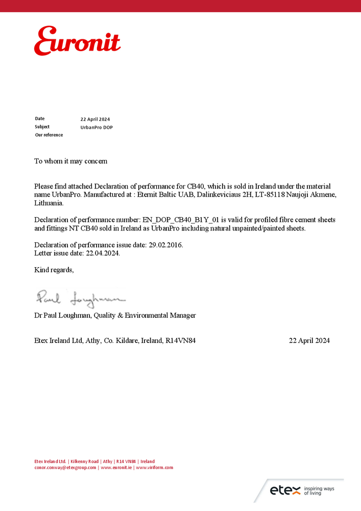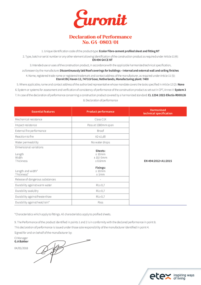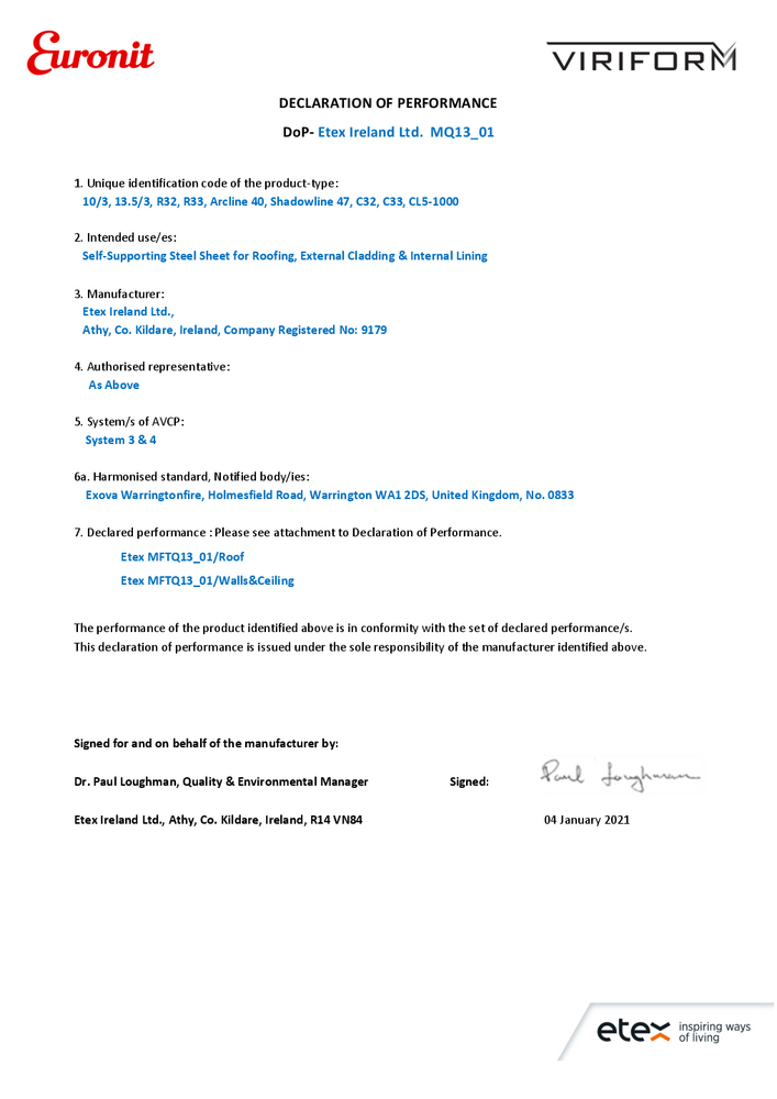 DoP Metal Roofing and Cladding Euronit Declaration of Performance DoP Metal Roofing and Cladding Euronit